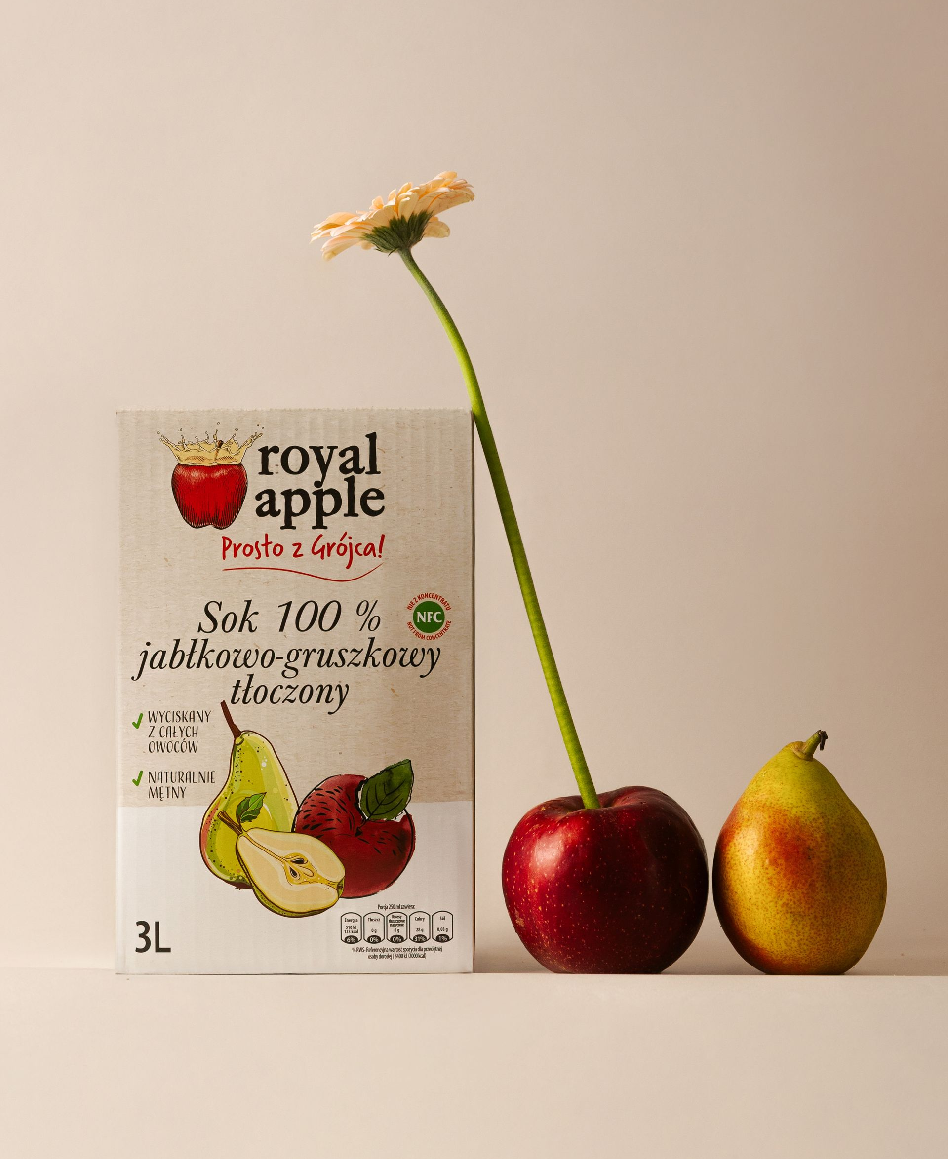 Kto z nas nie lubi cieszyć się wspólnym posiłkiem w gronie najbliższych? Kiedy nadchodzi czas spotkań, rozmów i uśmiechów, dobrze mieć pod ręką sok Royal-Apple o smaku jabłkowo-gruszkowym. Teraz dostępny także w 3-ltrowym kartonie! Wykorzystujemy nasze doświadczenie w produkcji zdrowych i naturalnych soków oraz dokładamy wszelkich starań, by praktyczne opakowania jak najbardziej korespondowały z Twoimi potrzebami.Jabłko i gruszka sprawiają, że pozostaje już tylko cieszyć się spotkaniem w gronie bliskich i przyjaciół.