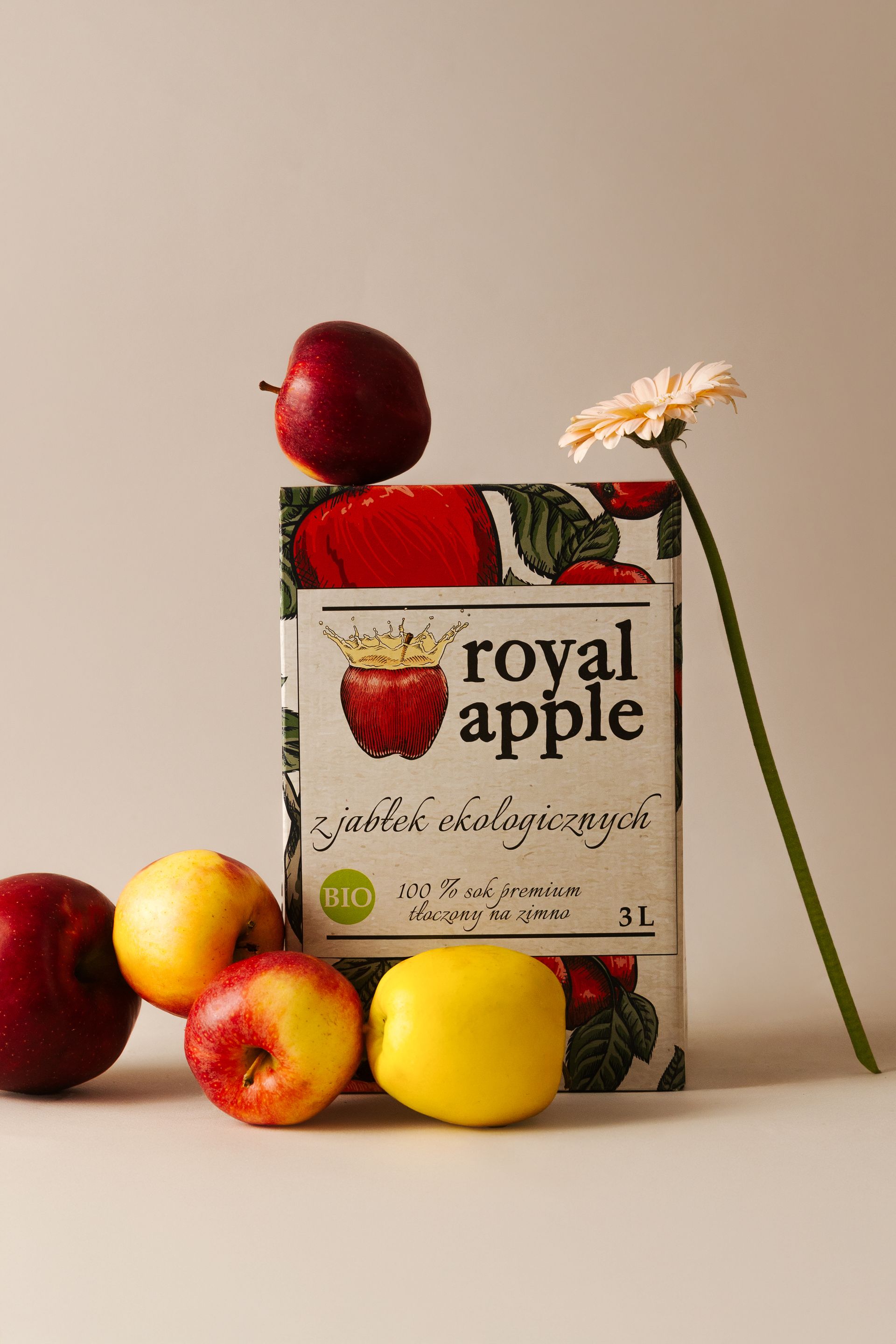 Prawdziwy smak powstaje jedynie na łonie natury. Zaufaj naszemu doświadczeniu i sięgnij po łyk czegoś prawdziwego. Naturalnie mętny Royal Apple BIO tłoczymy z owoców, które pochodzą wyłącznie z certyfikowanych, ekologicznych upraw. Wyciśnięty na zimno sok jabłkowy zachowuje niemal sto procent właściwości i składników uzyskanych z letnich i jesiennych zbiorów. Dlatego w poręcznym kartonie 3L znajdziesz pełnię smaku, które można znaleźć również w świeżych warzywach i owocach.
